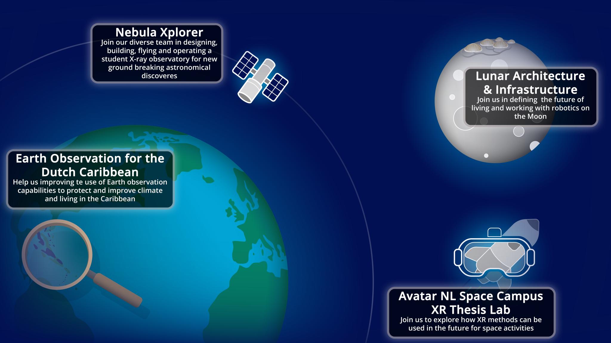 Do you need more Space in your Master thesis? Join one of the LDE Space Thesis Lab programmes to work on your master thesis as part of an interdisciplinary challenge set by a company, governmental organisation or an LDE collaboration of different space related departments. Besides working on your own Master thesis, you will meet with professionals and academic experts, follow workshops, lectures and join excursions. With your teammates you will also be working on a challenge. The LDE Space Thesis Lab programme enables you to get the most out of your Master thesis project by working with other students from various disciplines on actual challenges in the space domain.